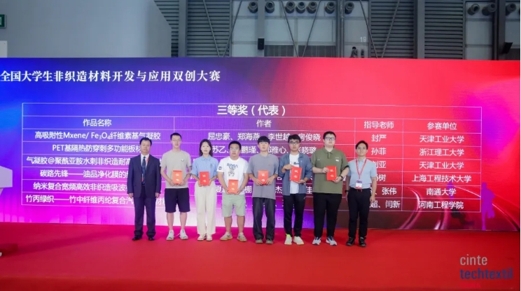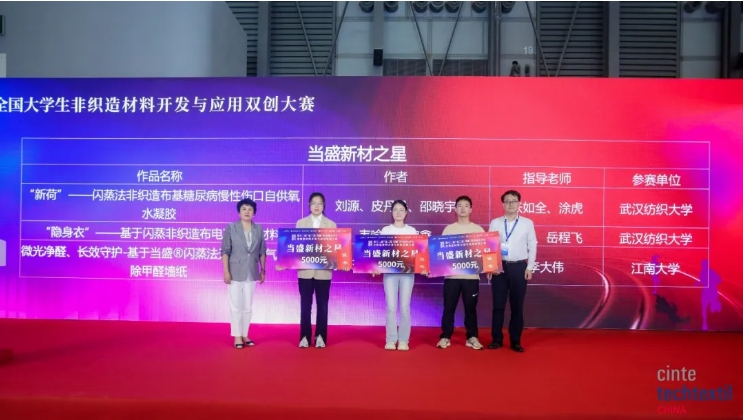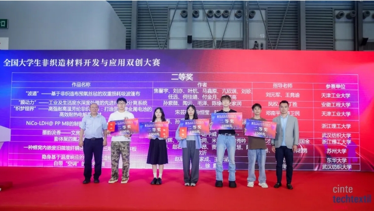 Li Lingshen, Naib Presiden Majlis Tekstil dan Pakaian Negara China, Liang Pengcheng, Naib Presiden Majlis Tekstil dan Pakaian Kebangsaan China dan Naib Presiden Eksekutif Cawangan Industri Tekstil Majlis China untuk Promosi Perdagangan Antarabangsa, Ni Yangsheng, Presiden Tekstil China dan Persatuan Pendidikan Pakaian, Li Guimei, Presiden Persatuan Industri Tekstil Perindustrian China, Qian Xiaoming, Pengarah Jawatankuasa Kecil Bahan Bukan Tenunan dan Kejuruteraan Pengajaran Profesional Tekstil Jawatankuasa Pemandu Kolej dan Universiti Kementerian Pendidikan, Profesor Pusat Pengajian Sains Tekstil dan Kejuruteraan Universiti Politeknik Tianjin, Zhu Feichao, Timbalan Pengarah Jabatan Pembinaan Disiplin Universiti Teknologi Sains Zhejiang, Yu Lan, Timbalan Setiausaha Pusat Pengajian Kejuruteraan Tekstil dan Pakaian Universiti Soochow, Yan Yan, Naib Pengerusi Zhejiang Kingsanda Group Co., Ltd., Zuo Hongyun, Pengerusi Jiangsu Baijiali New Material Technology Co., Ltd., Chen Hua, Pengurus Besar Henan Yixiang Health Technology Co., Ltd., Shan Lei, Pengarah Pemasaran Xiamen Dangsheng New Materials Co., Ltd., dan tetamu terkemuka lain, serta pelajar yang memenangi anugerah pertandingan ini, guru-guru dan wakil pelajar universiti yang mengambil bahagian telah menghadiri majlis anugerah tersebut. Mesyuarat itu dipengerusikan oleh Profesor Feng Yan dari Universiti Politeknik Tianjin.